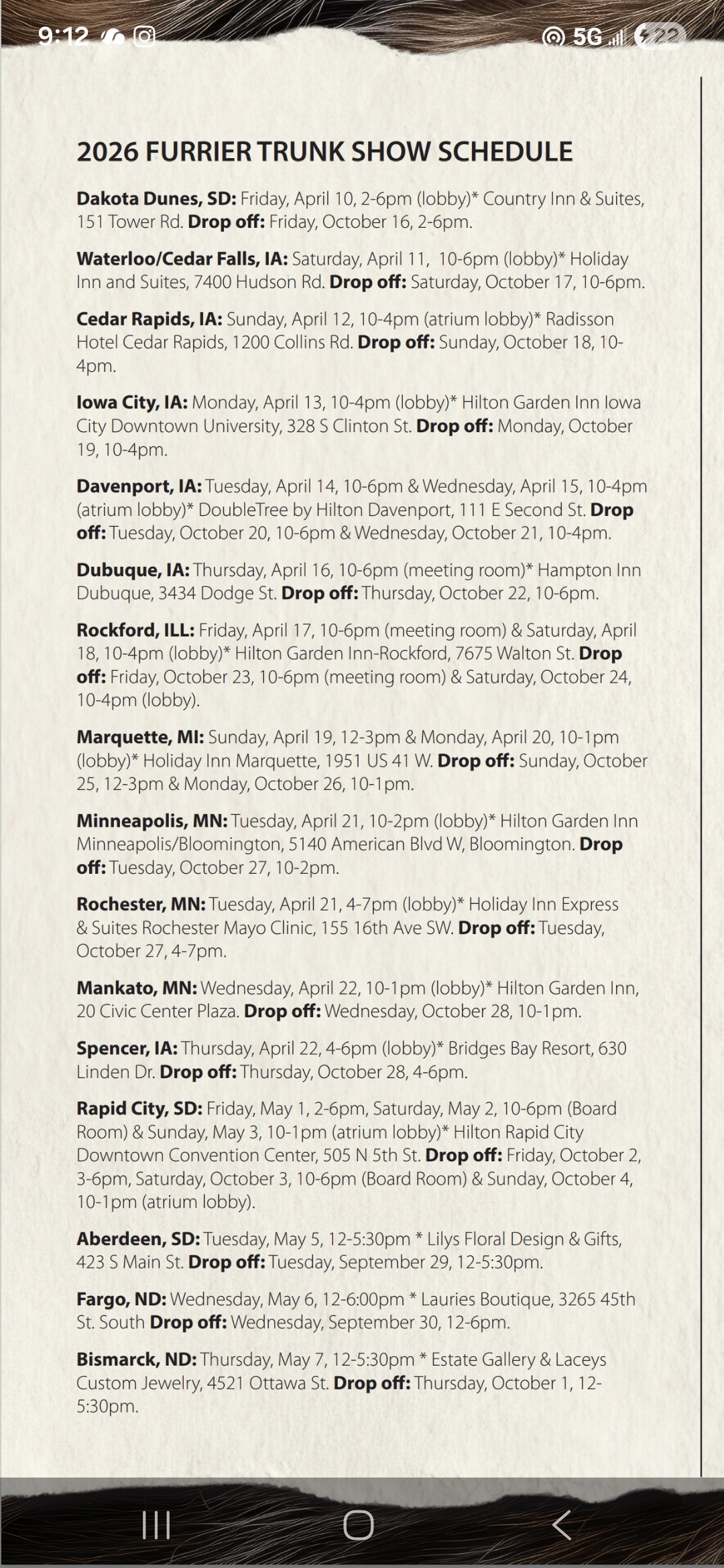 #SiouxFalls #RapidCity #SiouxCity #DakotaDunes #Aberdeen #FargoND #BismarckND #Minneapolis #RochesterMN #Mankato #Waterloo #IowaCity #CedarFalls #Davenport #Dubuque #RockfordIL #marquettemichigan #SpiritLake #furcoat